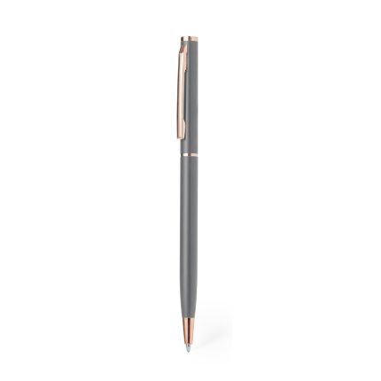 Ξεχωριστό σετ στυλό και roller στυλό, σχεδιασμένα και τα δύο με κομψά μαύρα σώματα αλουμινίου και ροζ χρυσά διακοσμητικά στοιχεία.