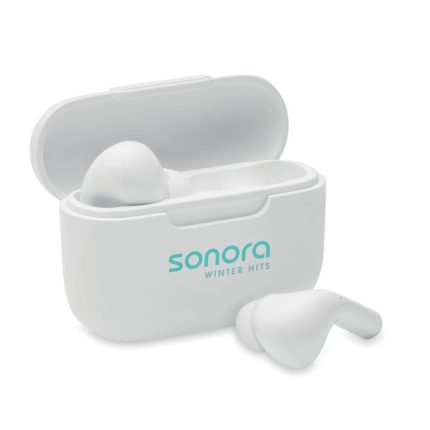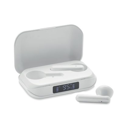 Ανακυκλωμένα ασύρματα στερεοφωνικά ακουστικά ABS True Wireless Stereo (TWS) 5.3 με μικρόφωνο και μπαταρία 25 mAh. Χρόνος αναπαραγωγής περίπου 3 ώρες. Διαθέτει οθόνη LCD επιπέδου φόρτισης. Αυτόματη σύζευξη. Περιλαμβάνει καλώδιο φόρτισης τύπου C και σταθμό φόρτισης 250 mAh.