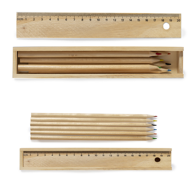 Ξυλομπογές σε κουτί με χάρακα ,6 χρώματα.