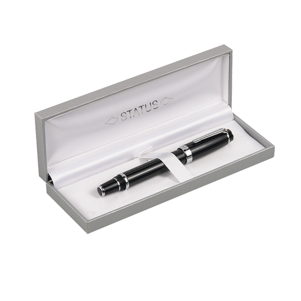 Ρόλερ Helios πολυτελείας μάρκας STATUS μαύρο με ασημί λεπτομέρειες σε γκρι κουτί με λευκό σατέν εσωτερικά