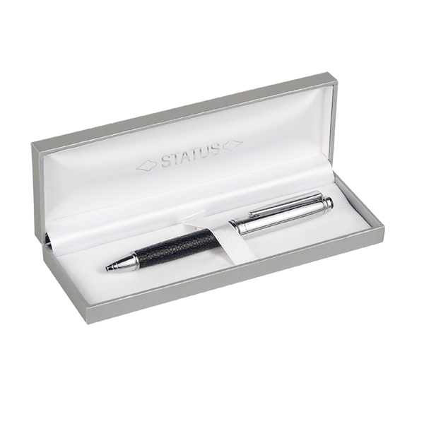 ΣΤΥΛΟ LUXOR Στυλό Luxor πολυτελείας μάρκας STATUS μαύρο τεχνητό δέρμα με ασημί λεπτομέρειες σε γκρι κουτί με λευκό σατέν εσωτερικά Για αυτούς που θέλουν ένα δώρο ποιότητας ΔΑ14Χ1,2cm XE 3,5Χ0,7cm (χάραξη)