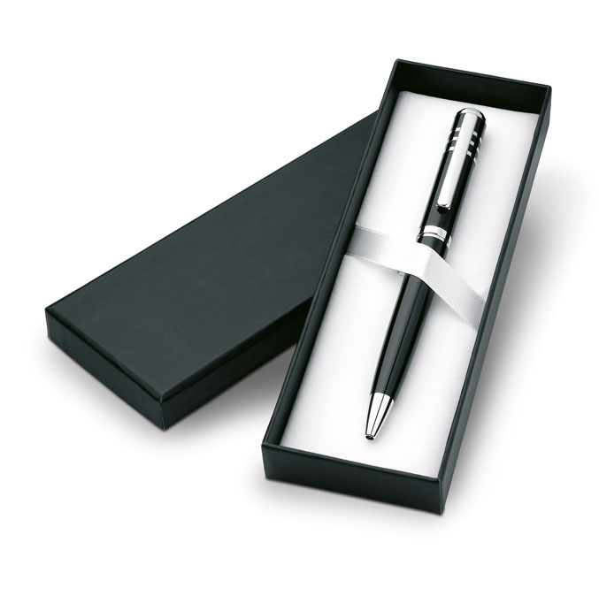 Στυλό μεταλλικό σε θήκη με ασημί λεπτομέρειες .