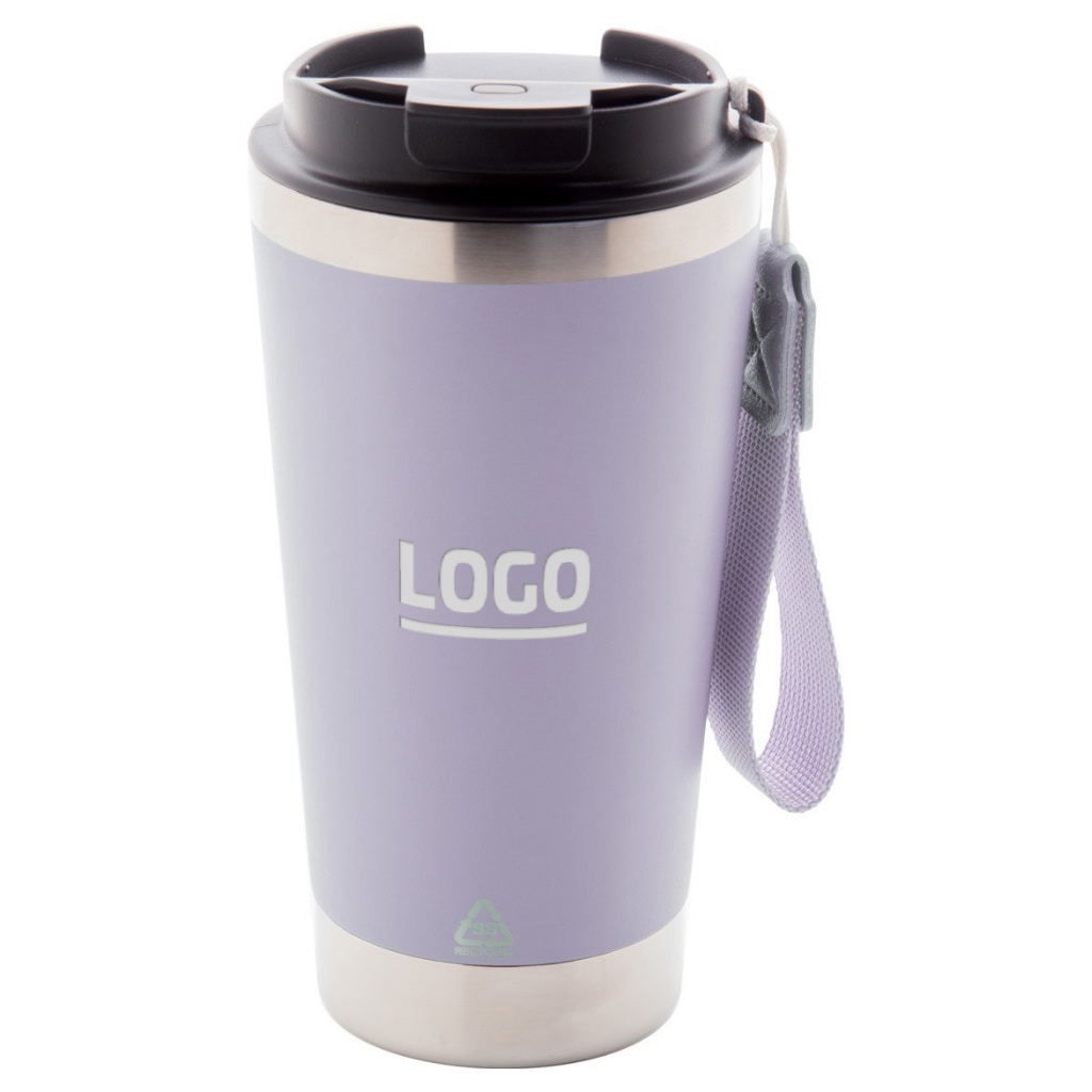Ποτήρι διπλού τοιχώματος από ανακυκλωμένο ανοξείδωτο ατσάλι (90% ανακυκλωμένο ανοξείδωτο ατσάλι και 10% ανοξείδωτο ατσάλι) με αφαιρούμενο περίβλημα από δέρμα πολυουρεθάνης. Καπάκι με συρόμενη οπή γουλιάς. Χωρίς διαρροές. Χωρητικότητα: 350 ml.