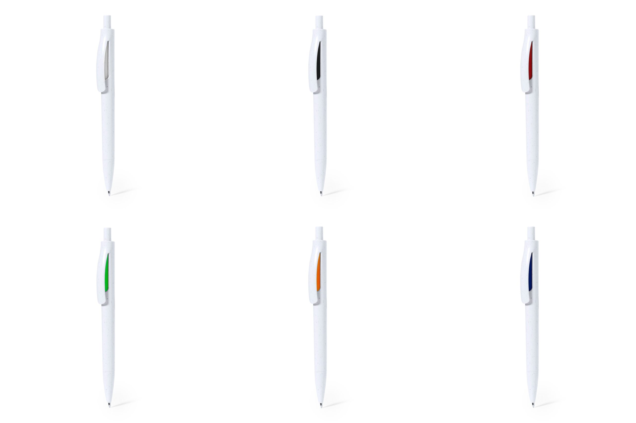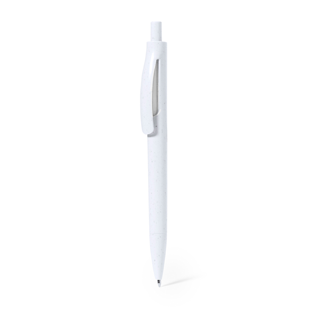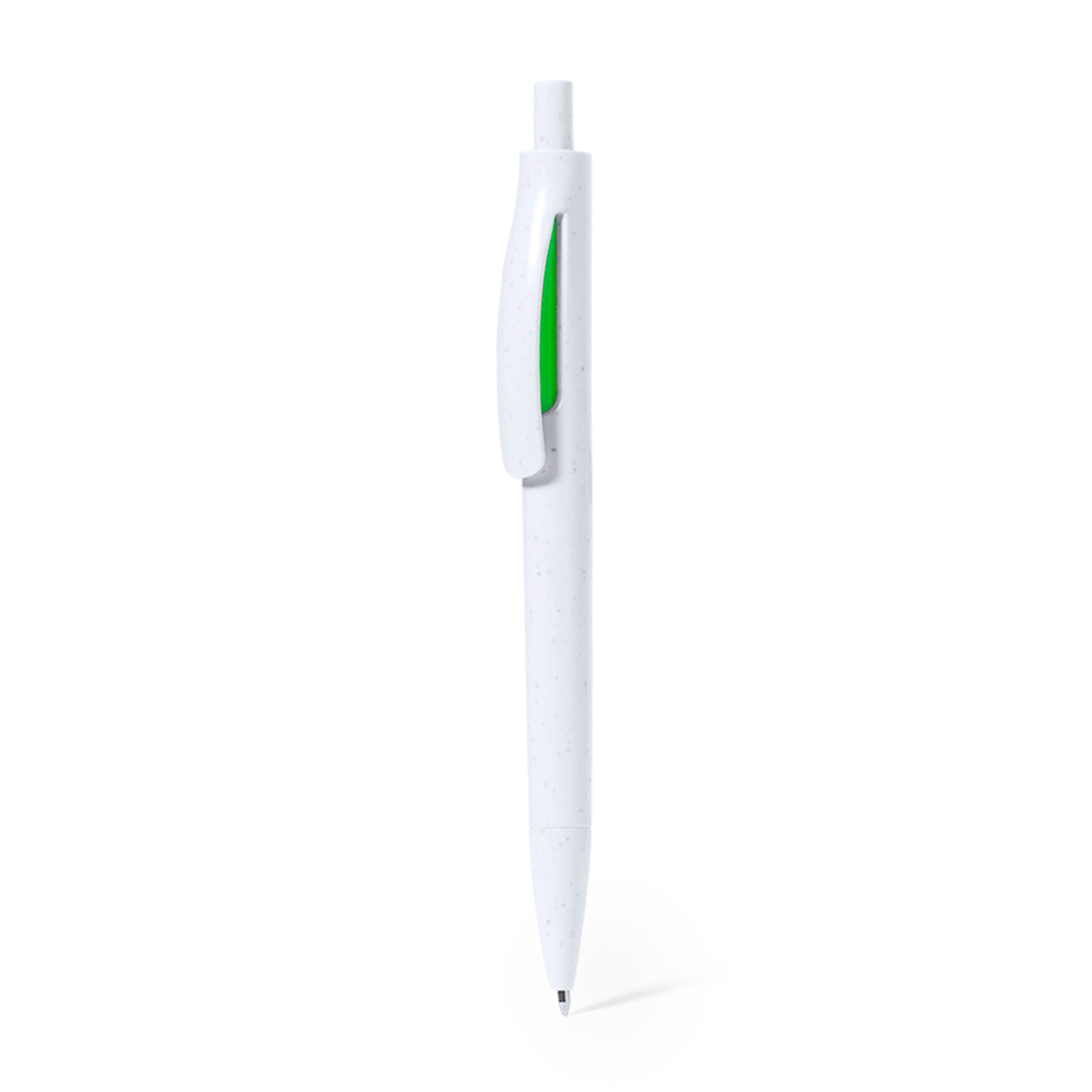Ανακυκλωμένο πλαστικό στυλό με άσπρο σώμα , χρωματιστές λεπτομέρειες.