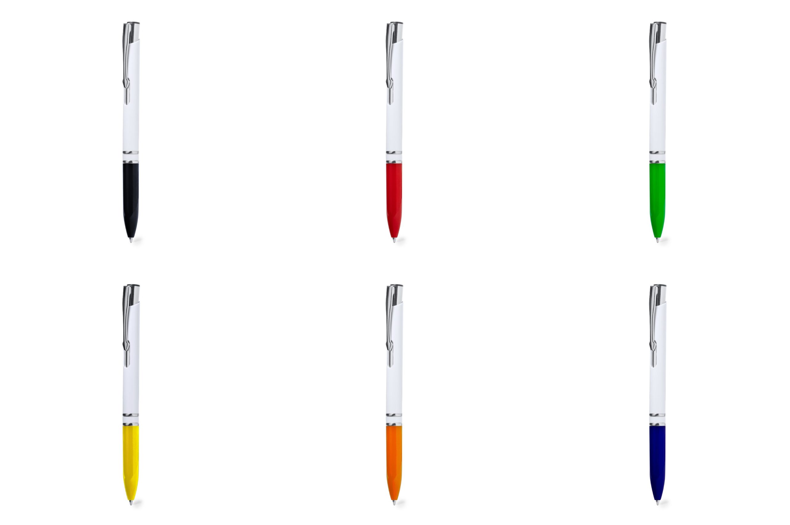 Κομψό στυλό με μηχανισμό μπουτόν. Με φινίρισμα σε γυαλιστερό λευκό και λαβή σε μεγάλη ποικιλία χρωμάτων.