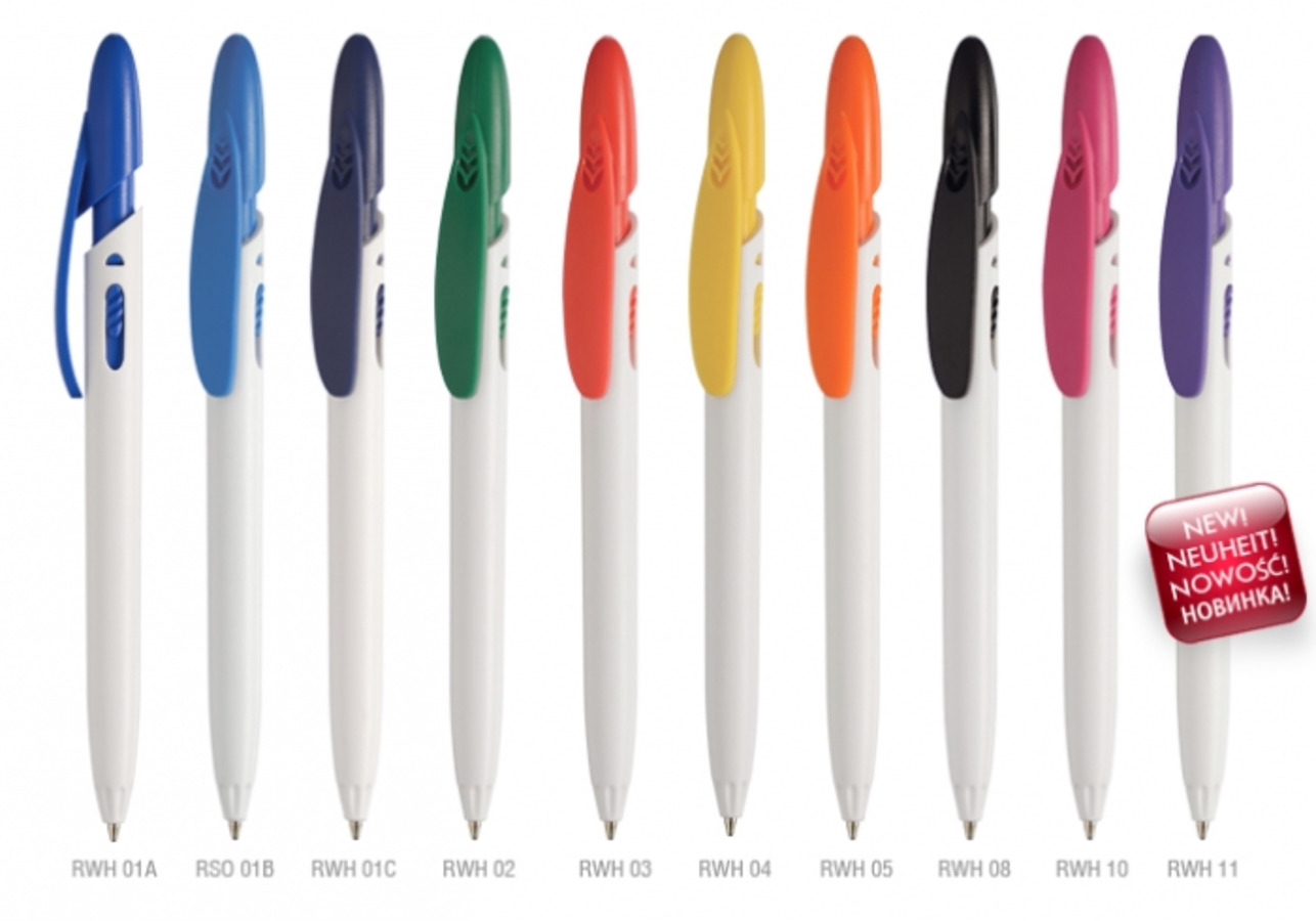 Πλαστικό στυλό με άσπρο σώμα , χρωματιστά clip.