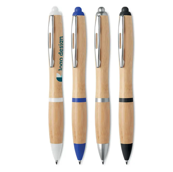 Στυλό απο bambu ξύλο με χρωματιστές λεπτομέρεις .
