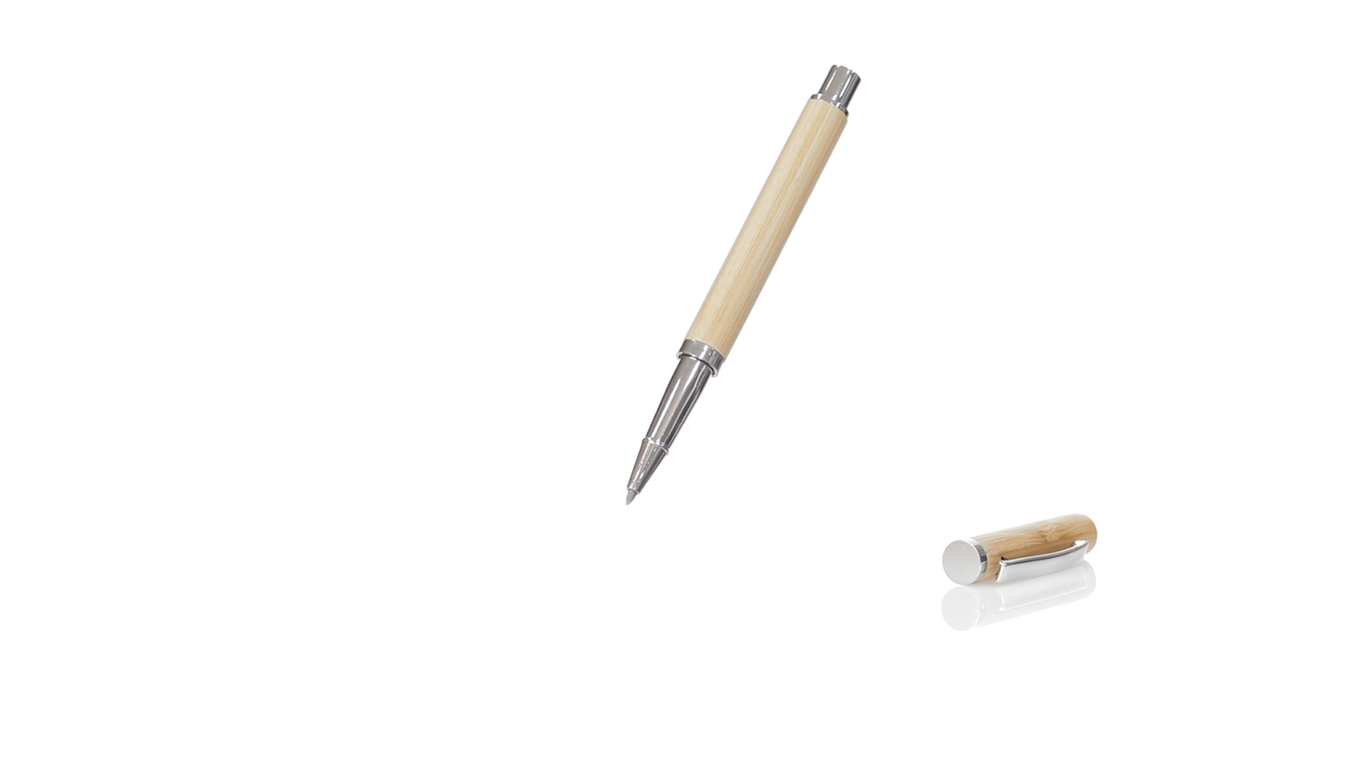 Στυλό roller κατασκευασμένο από μπαμπού, με μαλακό φινίρισμα και επιχρωμιωμένα αξεσουάρ.