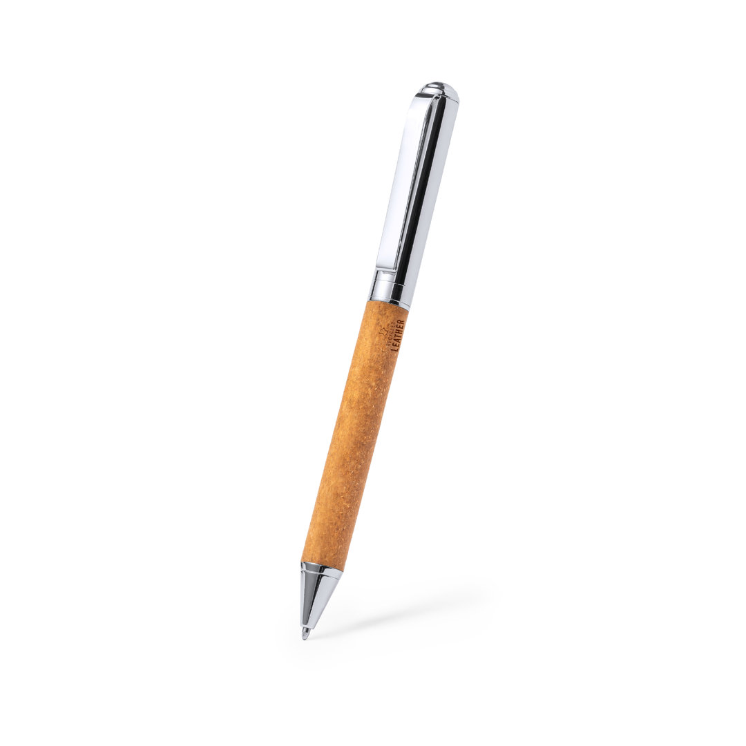 Στυλό από επιχρωμιωμένο μέταλλο με σώμα από ανακυκλωμένο δέρμα.