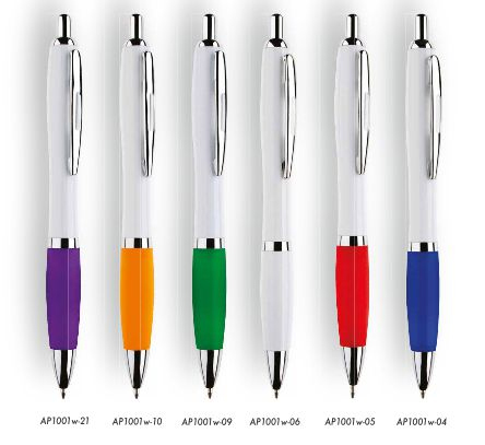 Πλαστικό στυλό με άσπρο σώμα , χρωματιστά rubber.