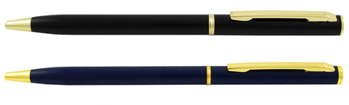 Στυλό slim αλουμινίου με χρυσές λεπτομέρειες .