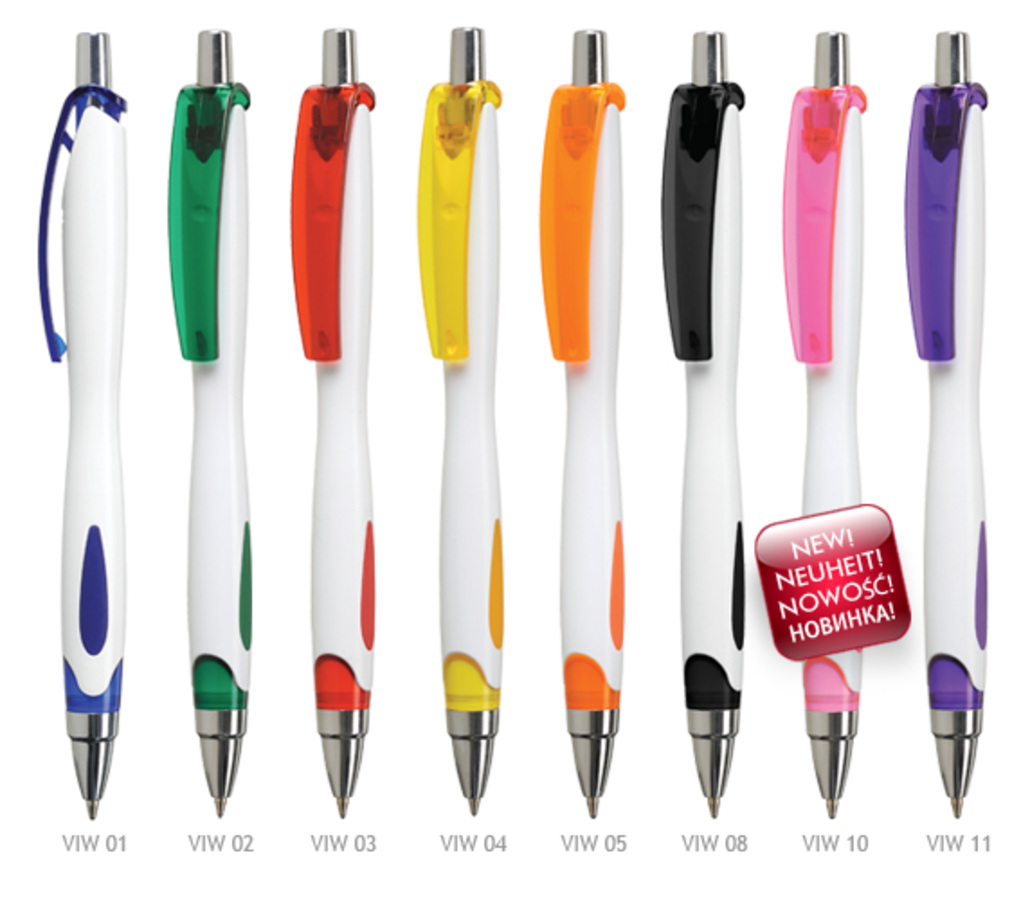 Πλαστικό στυλό με άσπρο σώμα , χρωματιστά clip.
